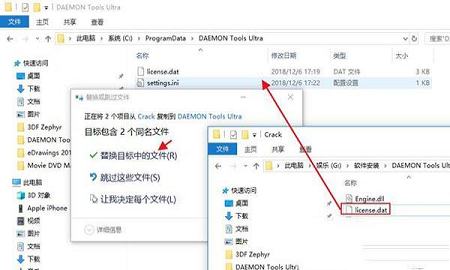 4、将破解补丁settings.ini和license.dat复制到C:\ProgramData\DAEMON Tools Ultra目录下替换源文件