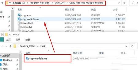 6、将crack文件下破解文件复制到源程序安装目录位置替换【C:\Program Files (x86)\VOVSOFT\Copy Files Into Multiple Folders】
