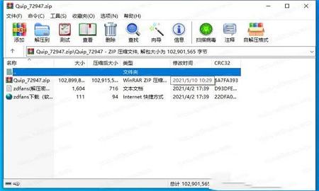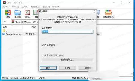 2、点击Quip_72947.zip压缩包,输入解压密码进行安装