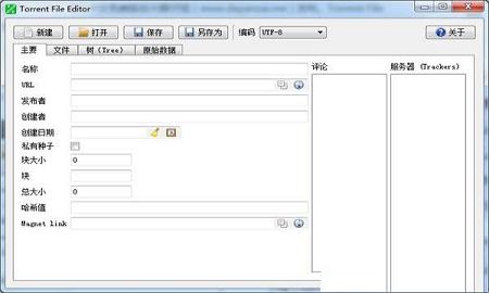Torrent File Editor是Winodws平台上的一款开源 BT 种子编辑器,这款软件的主要功能用来创建和编辑.torrent文件,BT种子文件,创建修改Torrent种子文件。是一个基于 Qt 的 GUI 工具,旨在创建和编辑.torrent文件。 有了这个应用程序,您可以从头开始创建.torrent文件。 此外,您可以以用户友好的方式编辑.torrent文件。 该工具可帮您从.torrent文件添加和删除数据,并交换这种格式的文件。提供了一个简约的,用户友好的界面,包装一些直观的功能,使有可能的多种用户,至少有对于torrent文件的基本知识,轻松地操作他们。更重要的是,没有标准的配置菜单,窗口或窗格是可用的,因为这个应用程序的目的是很简单:帮您在您的计算机上尽量快速,有效地创建或编辑torrent文件。如果您需要生成新的torrent文件或编辑现有的torrent文件,您可以转到此应用程序。为了这样做,您需要定义几个参数,包含名称,URL,发布商,创建时间,跟踪器和评论。此外,您必须指定哪些文件应该包含在您的torrent从您的计算机中选择。该应用程序还包含一个树和原始视图,可以帮您以多种方式查看您的torrent的内容。Torrent File Editor(BT种子编辑器)可以帮您在您的计算机上创建torrent文件或编辑现有的免费方式。