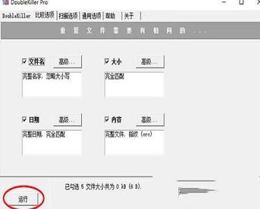 软件提供四种比较选项,分别是:文件名、大小、日期和内容
