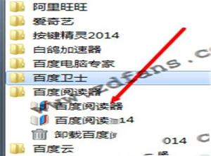 在开始/程序/百度阅读器/卸载的菜单顺序卸载