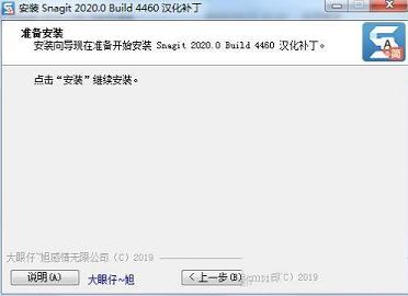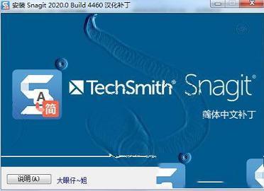 1、下载压缩包解压之后得到Snagit 2020汉化补丁,先把Snagit 2020主程序安装完成2、安装完成主程序之后,打开汉化补丁开始安装