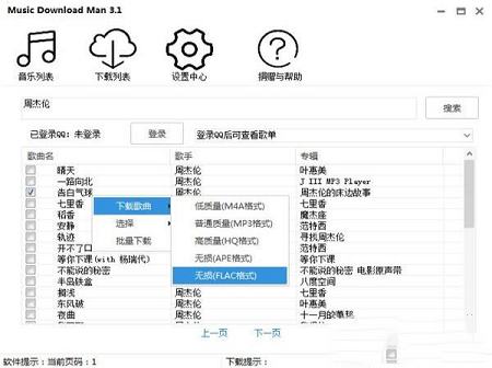 1、歌曲名称前面有SQ标志的话,说明这个歌曲有无损格式可以下载,可以选择ape或者flac选项2、歌曲前面显示的为HQ的话,说明只有320K,就只能选择Mp3格式哦